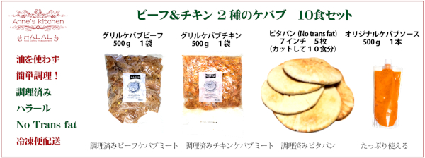 調理済みお肉・調理済みピタパン・オリジナルケバブソース(他の肉やドレッシングにも使用できます)